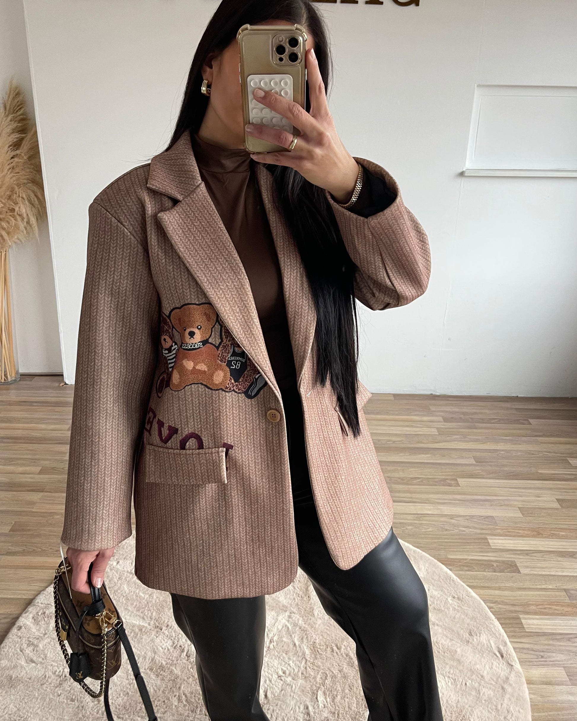 Hoe leuk is deze blazer.. Toen wij hem zagen waren wij gelijk verkocht! ONE SIZE kan gedragen worden tot een L