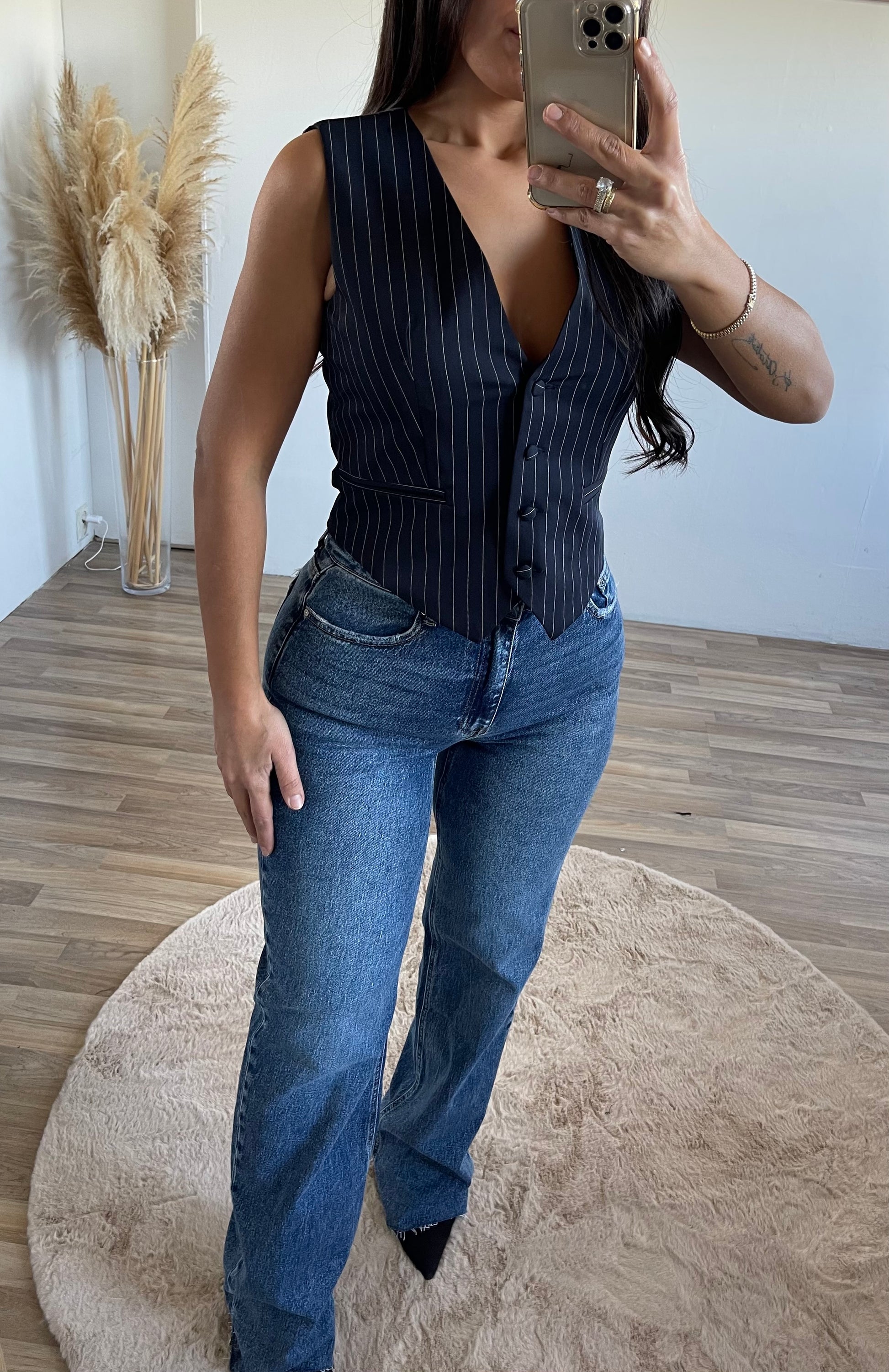 Deze mooie gilet heeft krijtstrepen en kun jij combineren met onze Macy Blazer.