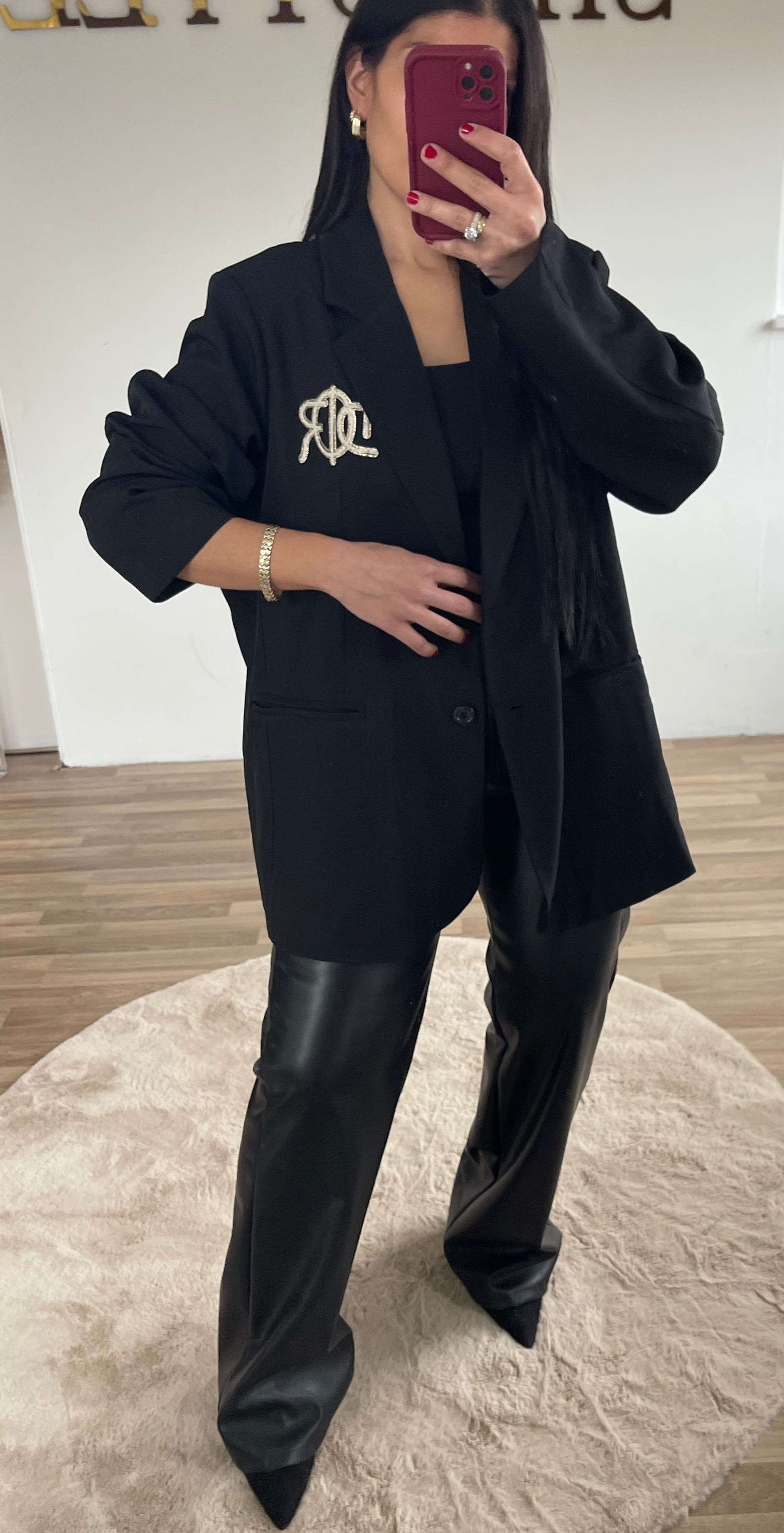Onze oversized Nola blazer is een must-have voor een stijlvolle look! Het unieke borstdetail met tekst en het opvallende rugdetail geven een speelse en moderne touch.
